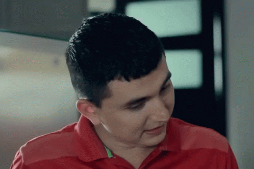 Ariel Camacho in a red polo shirt, looking to the side with a subtle expression of denial or being discovered.