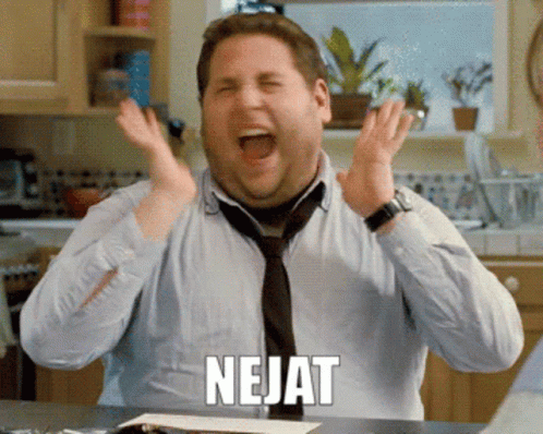 A man with an open mouth and the word 'NEJAT' displayed as a text overlay.