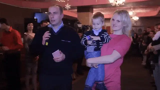A man in a tuxedo dramatically gestures on a street at night, with the caption 'Призываю Никиту'.