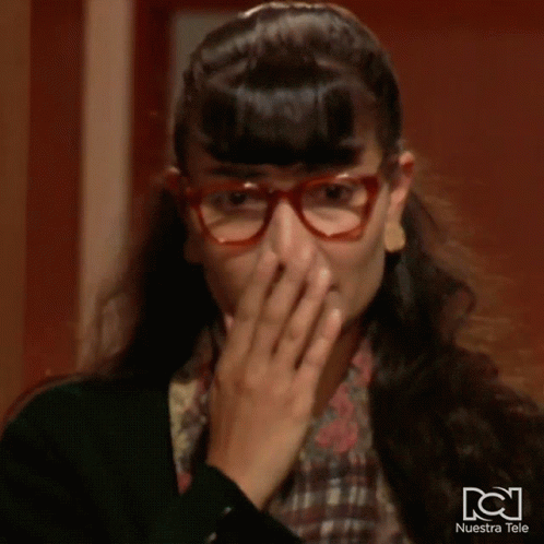 Ana Maria Orozco as Betty, looking nervous and worried in a scene from Yo Soy Betty La Fea.