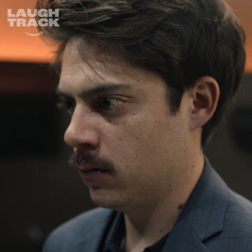 Daniel, played by Roberto Flores, looks visibly nervous in a close-up shot from Laugh Track.