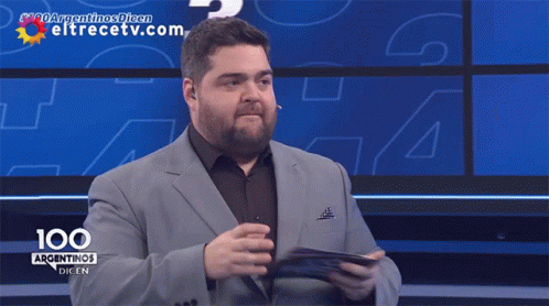 Dario Barassi, host of '100 Argentinos Dicen', covers his face with a card, appearing nervous or shy during the show.