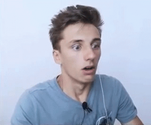 Akira, a Russian video blogger, reacts with an intense, nervous expression, pulling his hair back.
