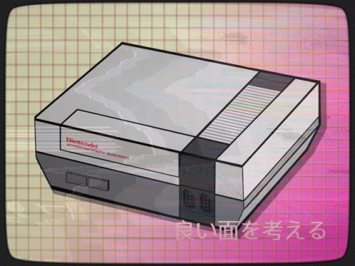 An animated retro-style drawing of the classic Nintendo Entertainment System (NES) console.