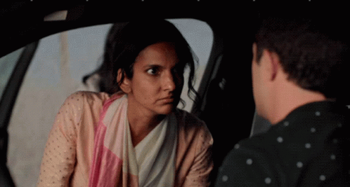 Devi Vishwakumar and her mother share a lighthearted moment with Ben Grossman, who is seated in a car.