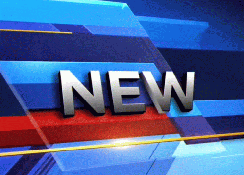 Dynamic 3D 'NEW' text animation against a vibrant blue and red abstract background with light flares.