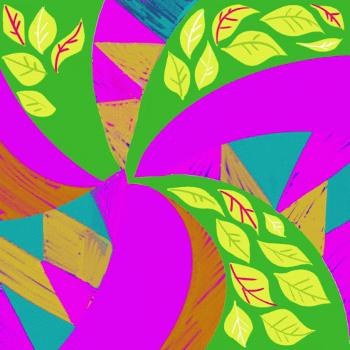 A vibrant animated graphic featuring a raised fist with "Feliz Año Nuevo" text, surrounded by colorful leaves and geometric patterns.
