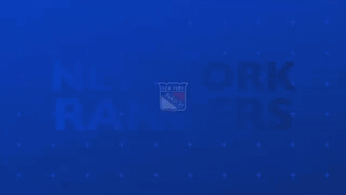 Animated graphic celebrating a New York Rangers goal, featuring the team's shield logo on a blue background.