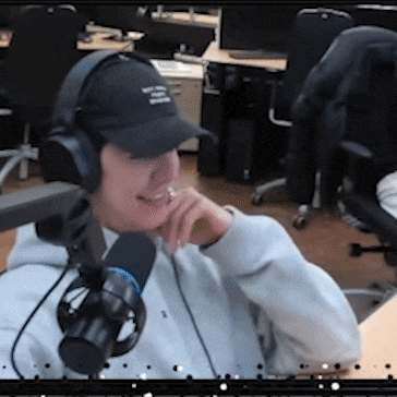 a man wearing headphones and a hat with the letter s on it talks into a microphone