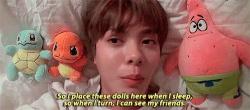 Newkidd Ji Han Sol explains why he places his plush dolls, including Squirtle and Patrick Star, next to him while sleeping.