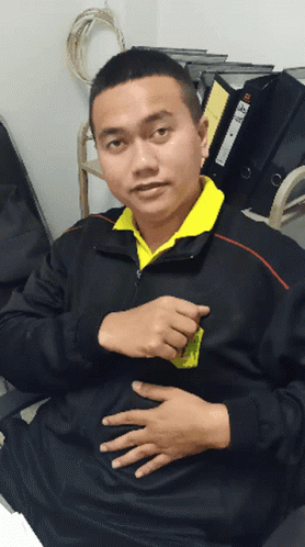 Newnatcha Newnatcha45 makes a heart gesture with his hands while wearing a black and yellow shirt.