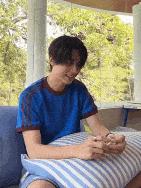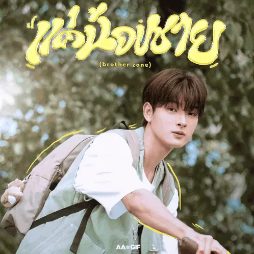 Nexnattakit เน็กซ์ poses outdoors, looking cool in a stylish green and brown jacket with gold details.