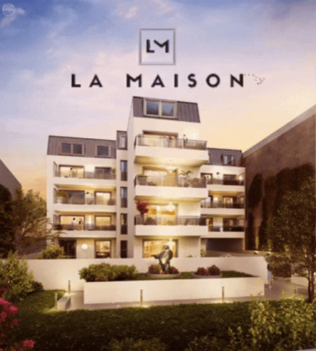 Ng Promotion presents a modern apartment building by La Maison, featuring numerous balconies and lush greenery.