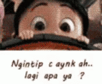 Agnes from Despicable Me peeking curiously, wondering what her darling is doing.