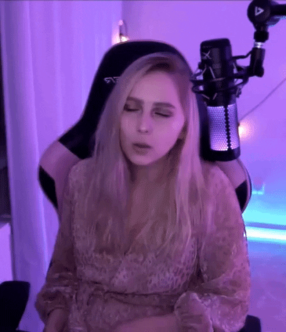 Streamer Niateppa sits in her gaming chair, looking at the camera with a microphone behind her.