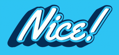 A vibrant blue and white animated logo displaying the word "Nice!" with a dynamic effect.
