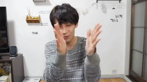 Hyuk claps enthusiastically, offering congratulations with a warm smile in this cheerful clip.