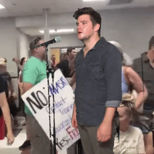 Nick Lutsko passionately speaks at a school board meeting, advocating for opening the school gym to alumni.