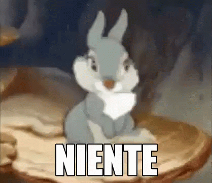 A sad animated rabbit, resembling Bambi's Thumper, sits with the Italian word 'NIENTE' (Nothing) displayed.