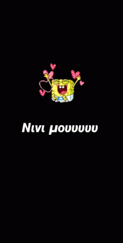 Spongebob Squarepants surrounded by pink hearts on a black background with the Greek text 'Nivi mouvvuu' (My Nivi).