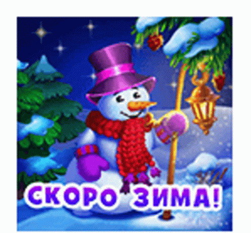 Ninisjgufi: A cheerful snowman in a purple hat and red scarf, holding a lantern, as winter approaches.