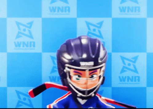 Ninjala character Van in ice hockey gear, pointing forward with a smirk as a star appears.