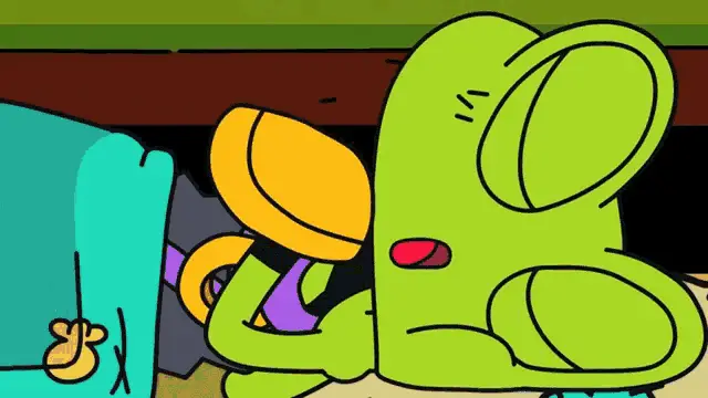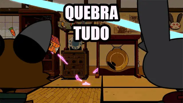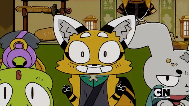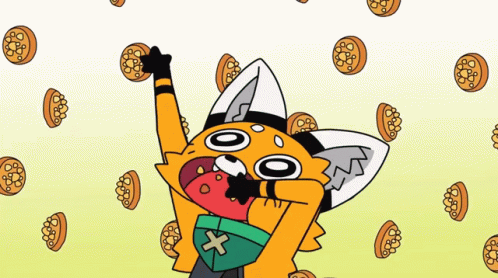 A cartoon character, Ninjin, surrounded by a vibrant pattern of pizzas.