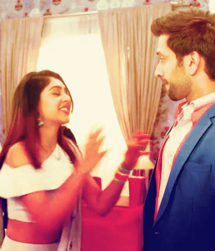 Niti Taylor, in a white off-shoulder top, shares a sweet moment with Mansh, who is wearing a blue suit.