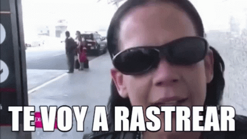 Niurka Marcos, wearing sunglasses, declares 'Te Voy A Rastrear' with a determined expression.