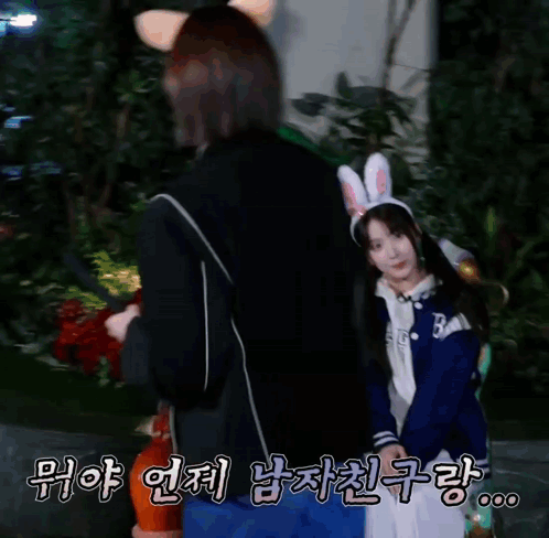 Nmixx members Bae and Jiwoo at Lotte World, with Bae playfully interacting with a statue, surprising Jiwoo.