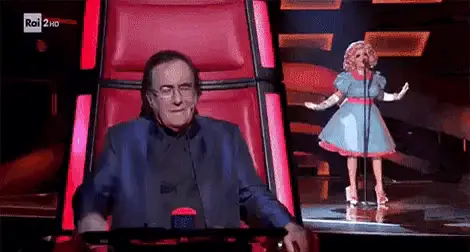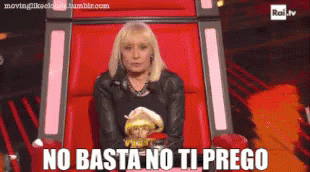 Raffaella Carrà reacts with 'No Basta No Ti Prego' while judging on The Voice Of Italy.