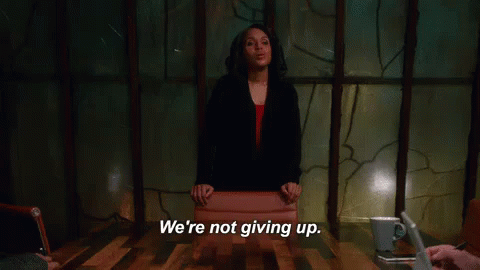 Kerry Washington delivers a powerful message, stating 'We're not giving up,' in a determined stance at a table.