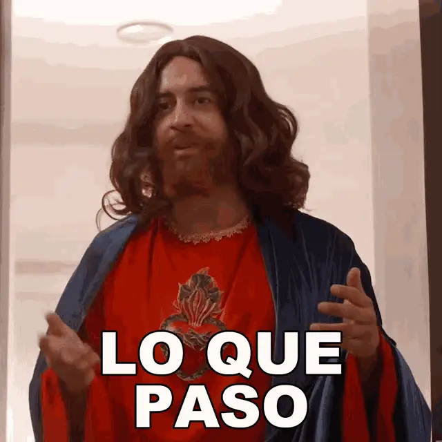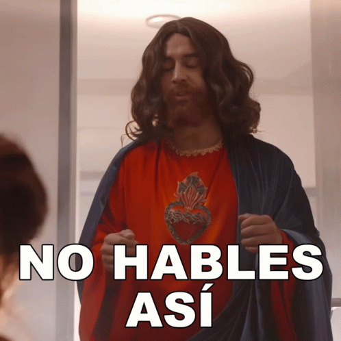 Daniel Tovar, dressed as Jesus, reacts to a comment with the caption 'No Hables Así'.