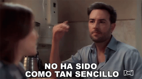 Mauricio (Sebastian Martinez) from 'Pa Quererte' says 'No ha sido como tan sencillo' to a woman.
