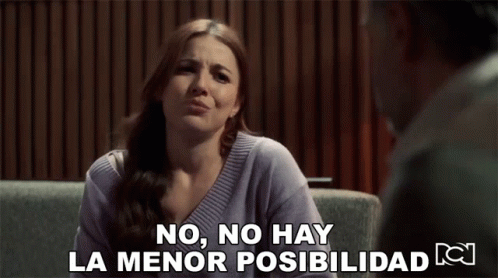 Dany, played by Juliette Pardue, emphatically states 'No hay la menor posibilidad' in a scene from Pa Quererte.