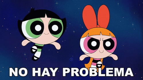 Blossom and Buttercup from The Powerpuff Girls with the phrase 'No Hay Problema' (No Problem).