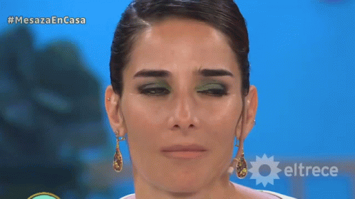 Juana Viale's surprised reaction on 'Mesaza en Casa' on El Trece, featuring her distinctive green eyeshadow.