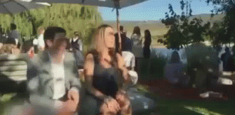 A woman dramatically avoids catching the bouquet at a wedding, leading to a hilarious 'No Lol' moment.