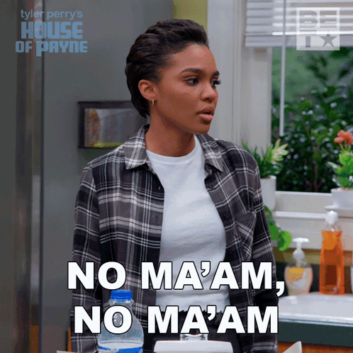 Jazmine Payne from Tyler Perry's House of Payne emphatically says 'No Ma'am, No Ma'am' in a memorable scene.