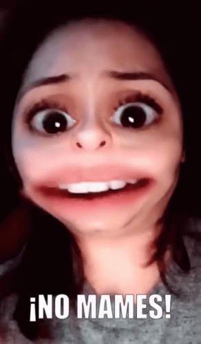 A woman makes a hilarious exaggerated face with the text '¡NO MAMES!' displayed, expressing disbelief.