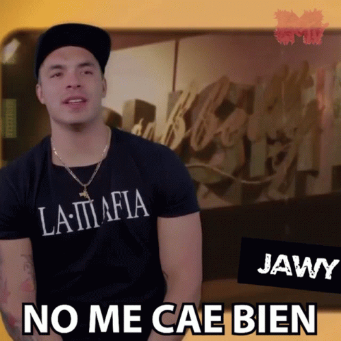 Jawy from Acapulco Shore expresses strong dislike, stating 'No Me Cae Bien No Me Gusta' while wearing a 'LA MAFIA' shirt.