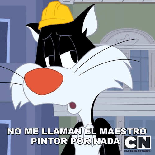 Sylvester the Cat, wearing a hard hat, proudly declares he's called the master painter for a reason.