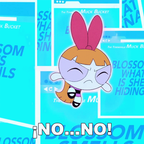 Blossom (Bombón) from The Powerpuff Girls emphatically says 'NO...NO!' in a vibrant animated clip.