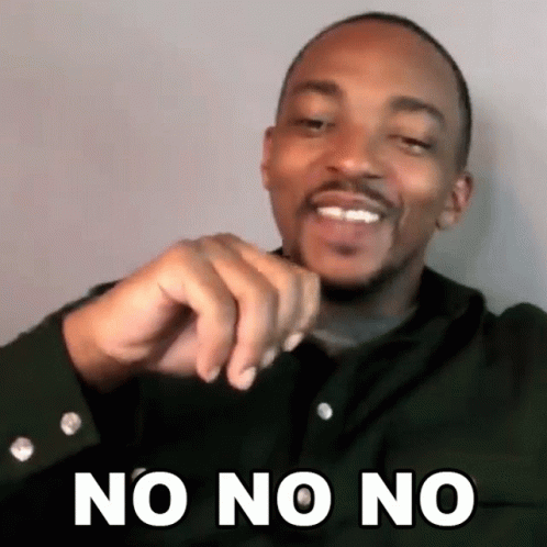 Anthony Mackie reacts with a firm 'No No No' expression, emphasizing his strong disagreement.