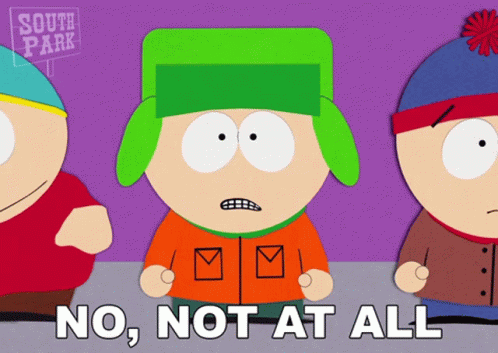 Kyle Broflovski from South Park emphatically states "No, not at all" with a surprised expression.