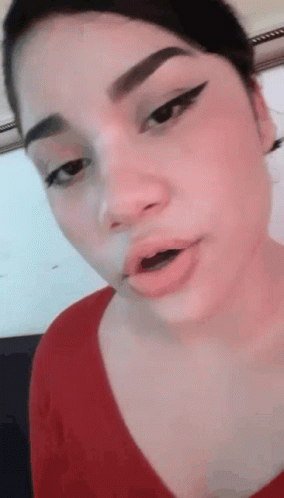 Ester winks and gestures, wearing a red shirt. A close-up of her face as she talks and interacts.