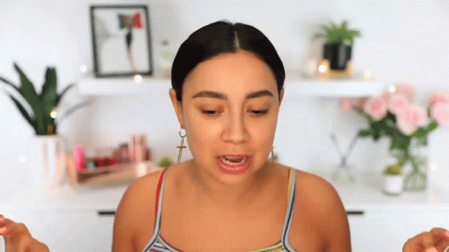 Woman in a striped tank top making a 'no' gesture with her fingers, with 'NO' text on screen.