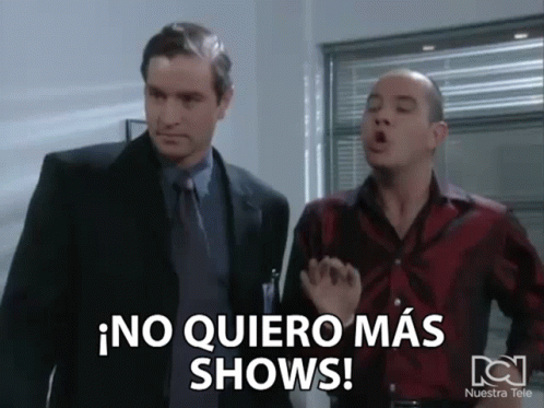 A scene from 'Yo Soy Betty La Fea' where a character emphatically states '¡No quiero más shows!' (I don't want more shows!).