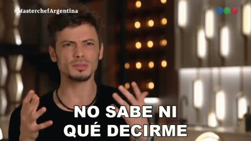 Tomas Fonzi from Masterchef Argentina, expressing frustration with the caption 'No sabe ni qué decirme'.