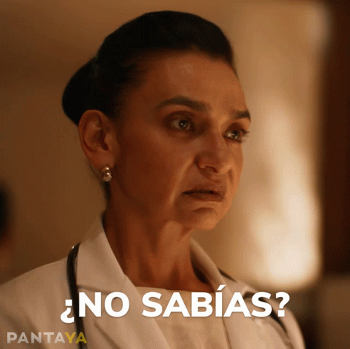 Aída López as Doctora Franco, looking confused in her lab coat and asking '¿No Sabías?' (Didn't you know?).